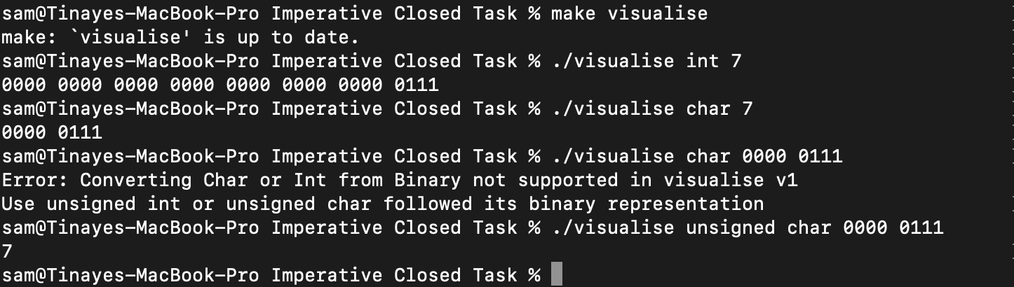 | Sketch | This assignment involved decoding a .sk sketch file and converting it into a visible SDL window. The open ended task involved encoding a .pgm file as a .sk file which I only managed to partially achieve. |